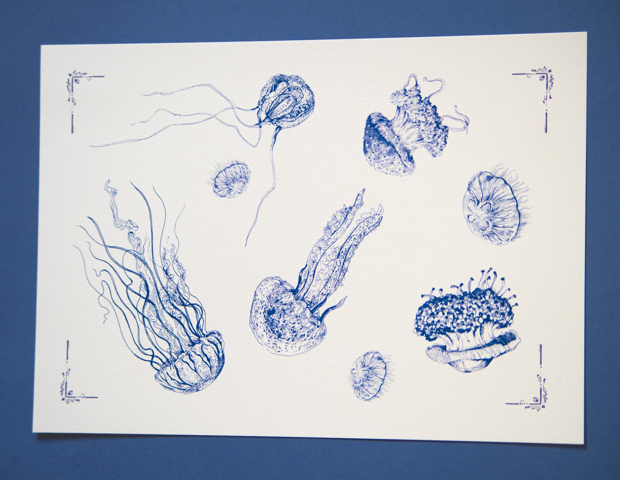 Our ocean is populated by mainly 1500 species of jellyfish. These mollusks are essential for our planet. This drawing shows some of them.