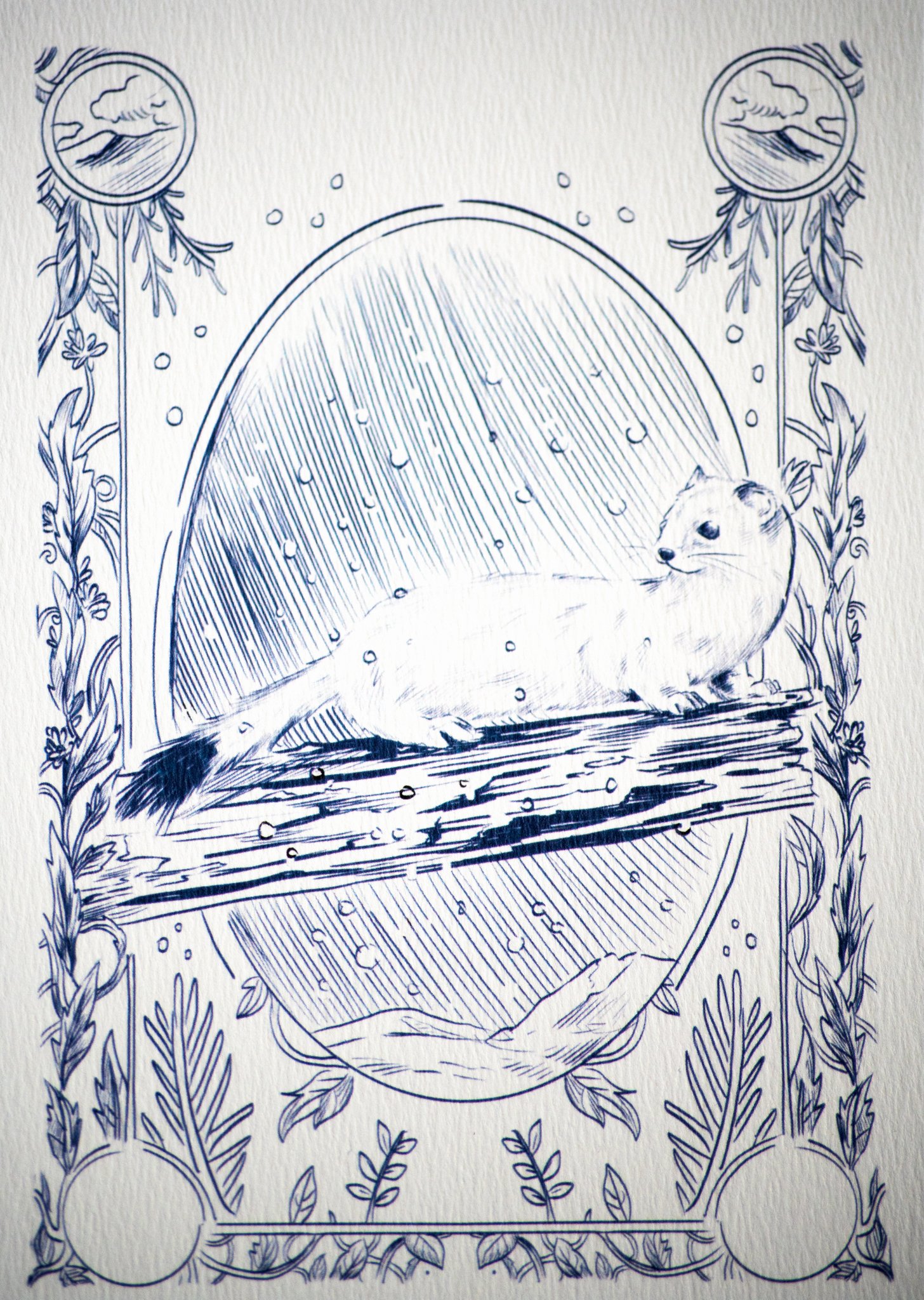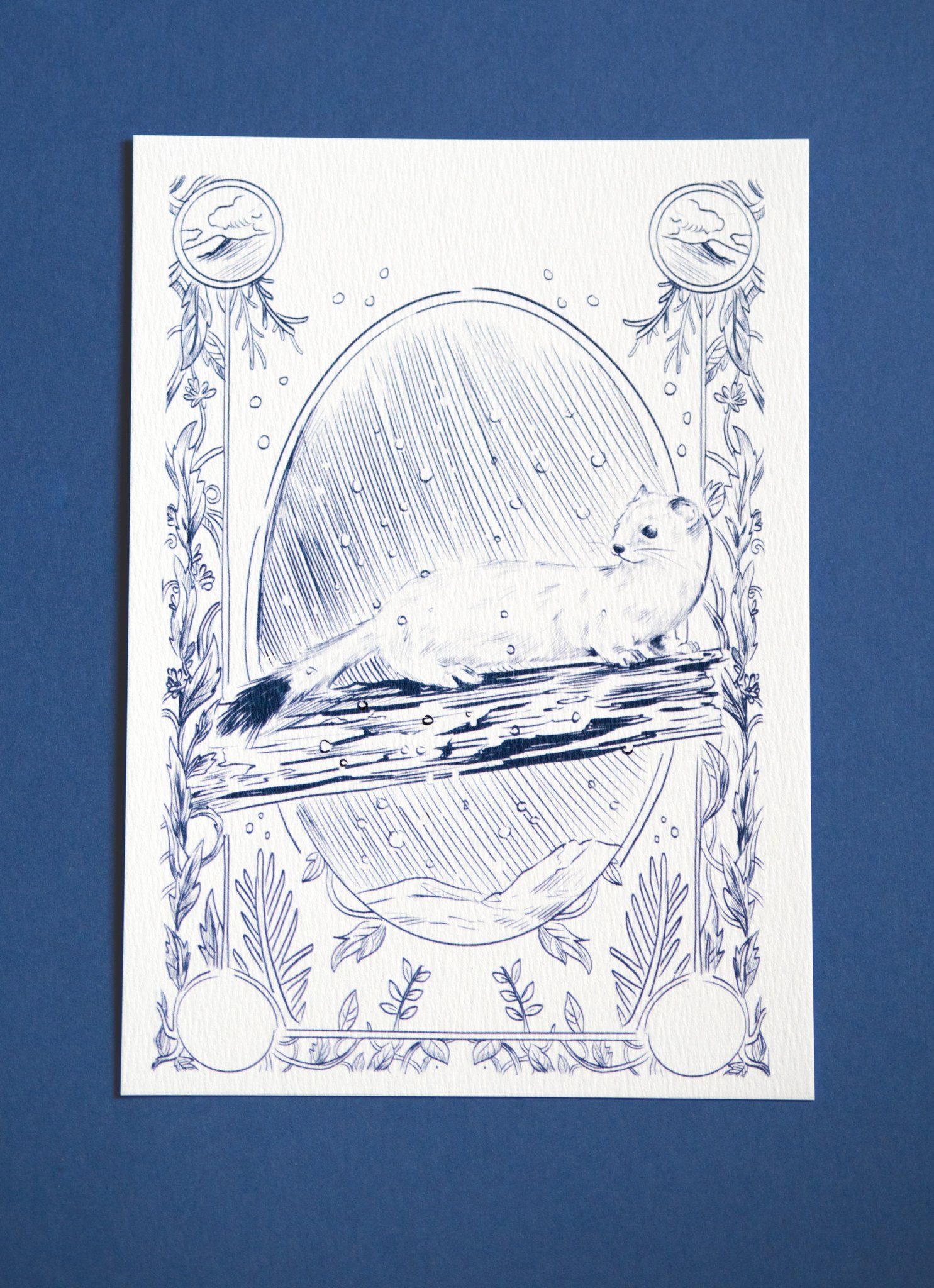 Encre sur papier, impression sur papier blanc texturé 320 g, format A6