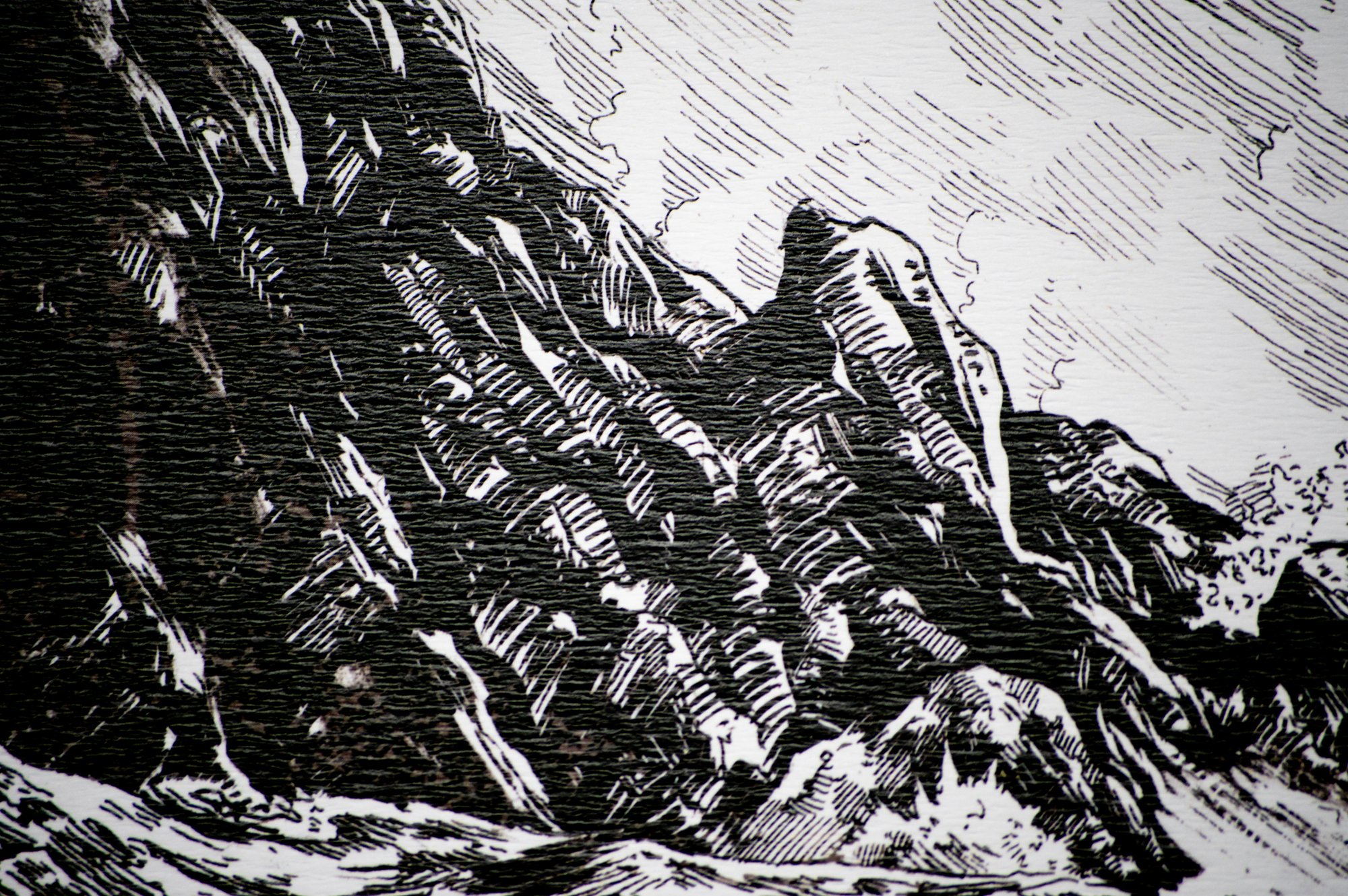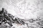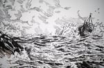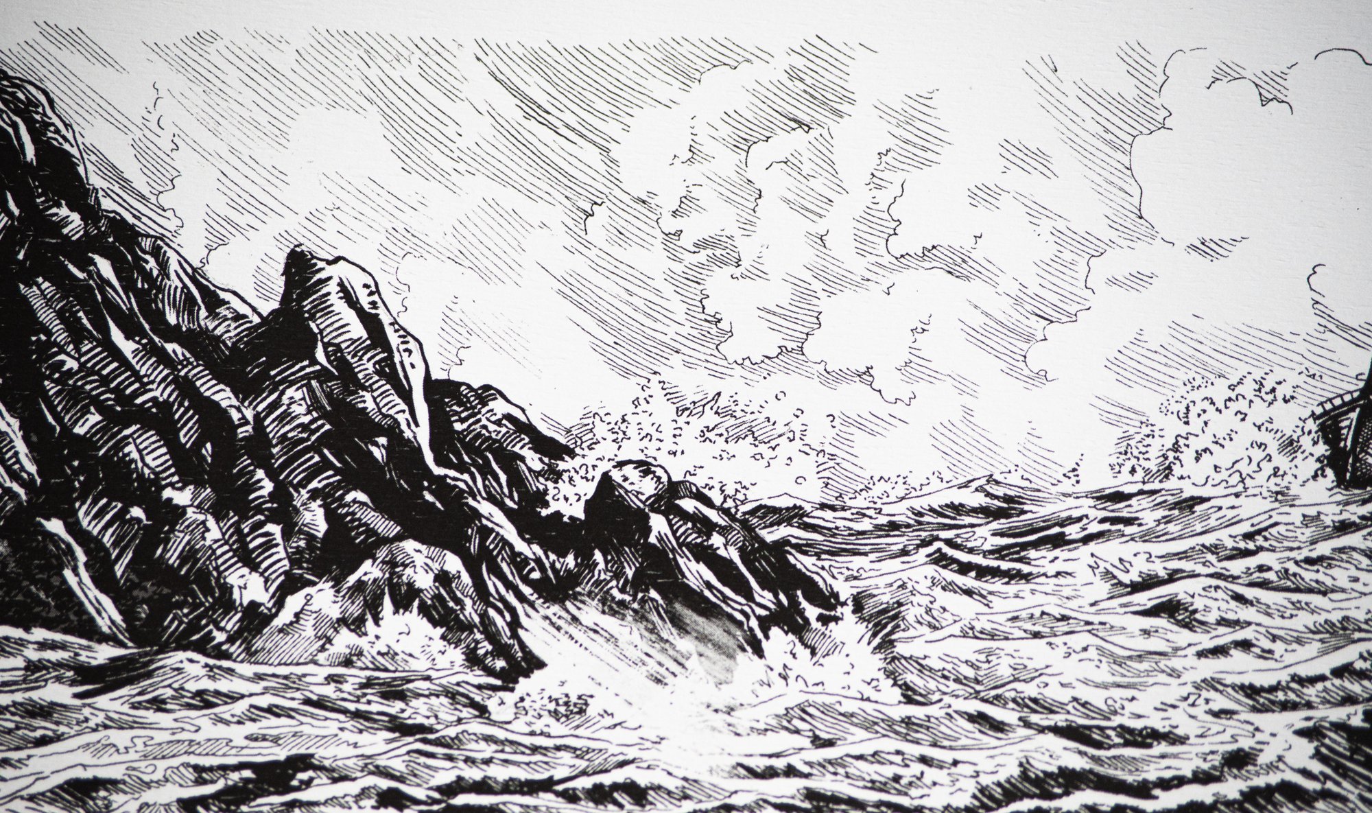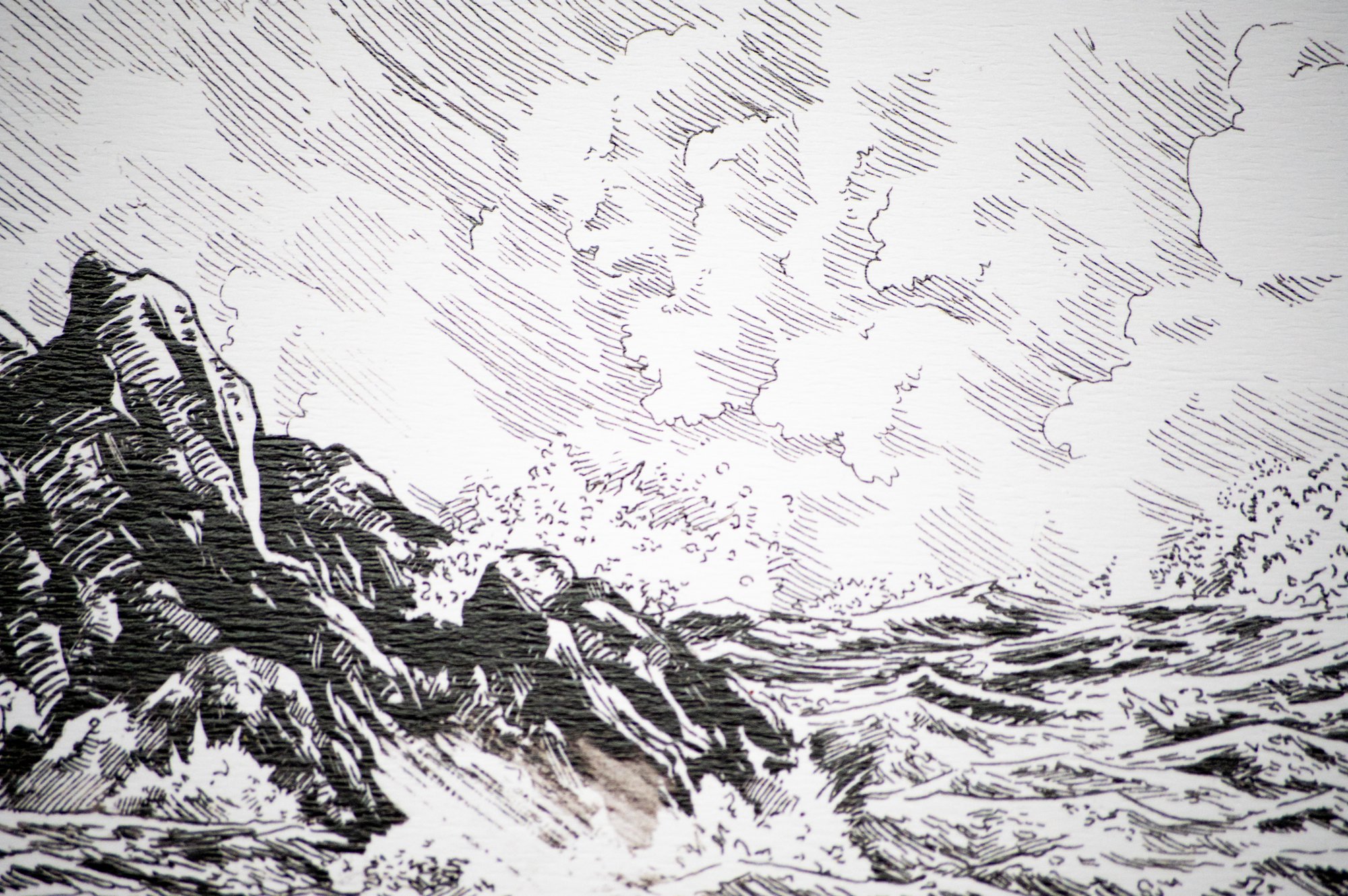 Ink and pen drawing. Printed on natural white textured paper 320 g, 26x12,5 inches
